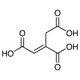 Транс-аконитовая кислота — ненасыщенная трикарбоновая кислота с одной C=C связью в цепи и тремя карбоксильными группами, что задаёт сочетание высокой полярности и выраженной многоточечной кислотно-основной и координационной химии. Наличие трёх –COOH обеспечивает ступенчатую диссоциацию и возможность формирования солей различной основности, а также многоцентровое связывание катионов через карбоксилаты. Двойная связь вводит независимую реакционную «точку» для превращений по алкеновому фрагменту (присоединение/гидрирование) и позволяет получать функциональные производные без разрушения трикарбонового каркаса. В технологическом контексте соединение рассматривают как полифункциональный кислый компонент для солеобразования/комплексообразования и как исходник для эфиров и полиэфирных фрагментов.
